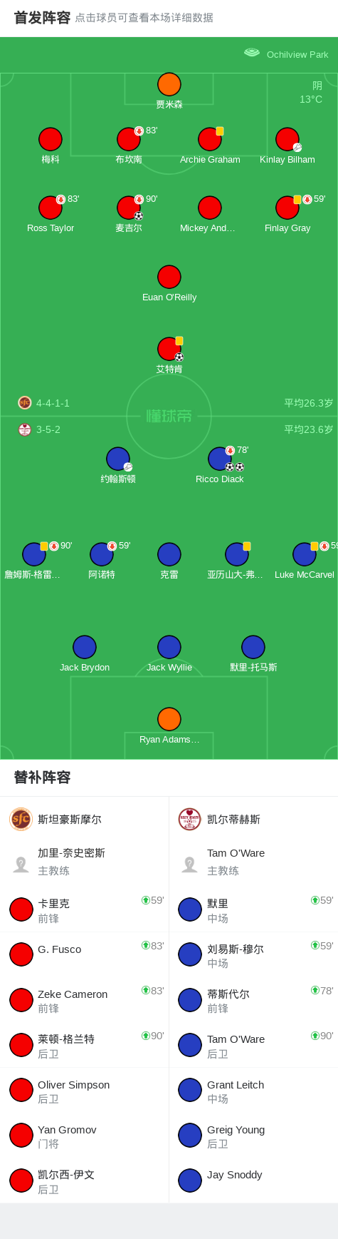 第38分钟,凯尔蒂赫斯球员约翰斯顿助攻Ricco Diack打入一球。