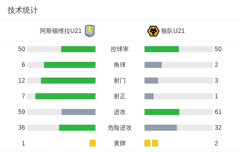 阿斯顿维拉U21 2-0狼队U21,罗里-威尔逊破门,吉莫-阿洛巴锁定胜局