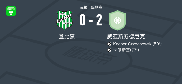 威亚斯威德尼克2-0登比察,Kacper Orzechowski破门,卡明斯基锁定胜局