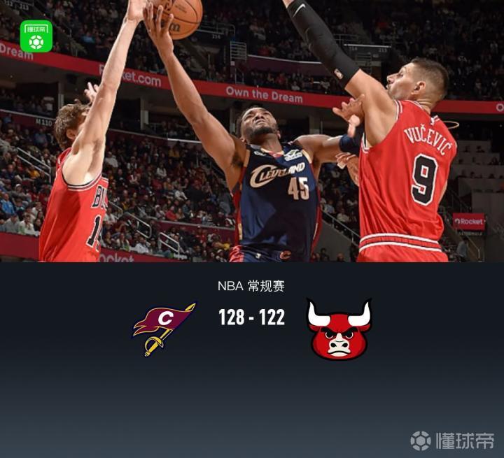 骑士128-122逆转公牛,米切尔29+6+6,吉迪15+9+6
