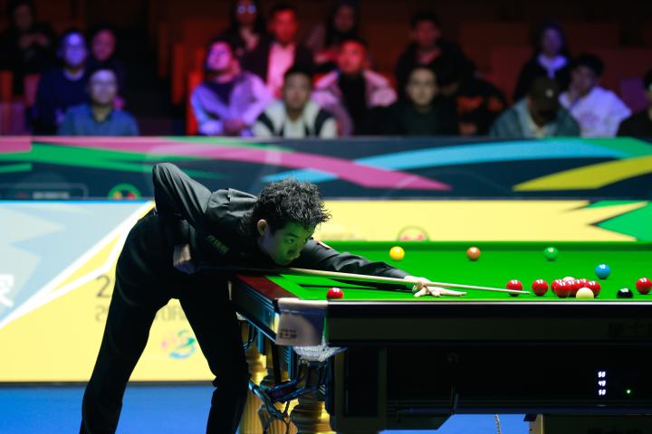 2025斯诺克国锦赛决赛第一阶段:吴宜泽暂5-4领先希金斯
