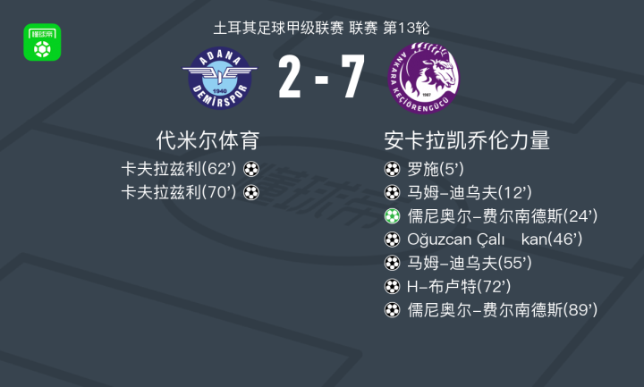 安卡拉凯乔伦力量7-2狂胜代米尔体育,儒尼奥尔-费尔南德斯双响,马姆-迪乌夫两球