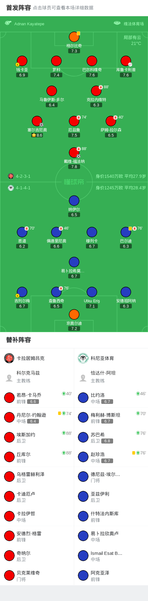 卡拉居姆吕克2-0科尼亚体育,塞尔吉尼奥建功,戴维-福法纳锦上添花