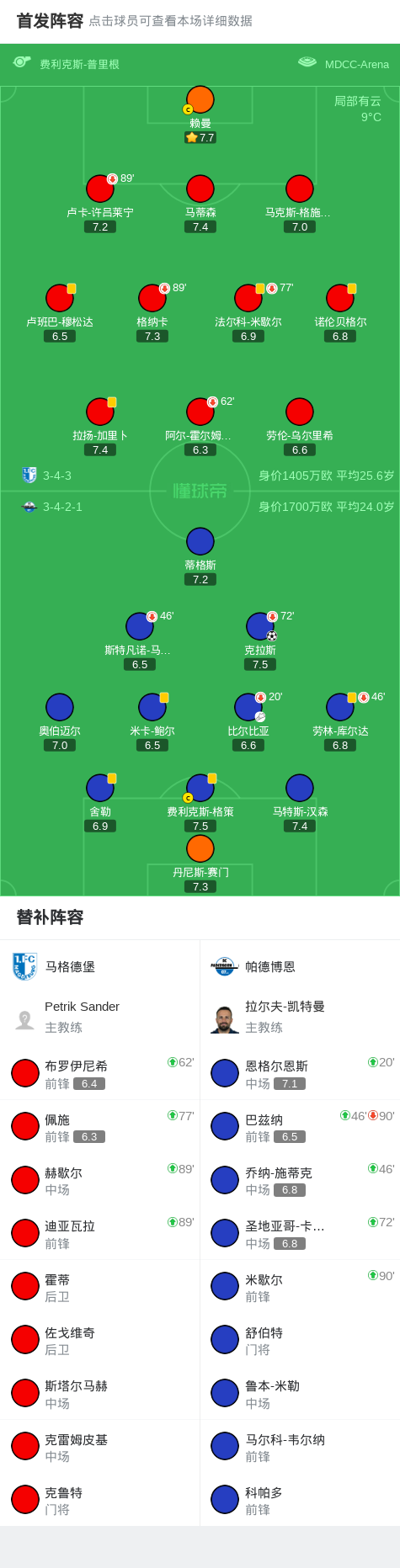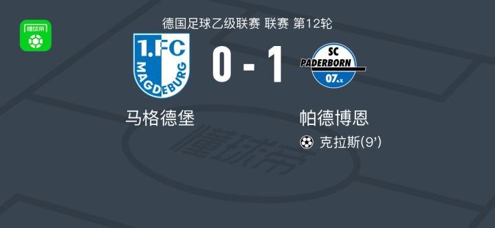 帕德博恩1-0马格德堡,克拉斯打进全场唯一进球战报bot @懂球帝2025-11-09 22:30北京时间11月9日德国足球乙级联赛 联赛 第12轮,马格德堡主场对阵帕德博恩。帕德博恩克拉斯破门。最终比分马格德堡 0-1 帕德博恩。点击查看本场比赛详细数据>>点击查看德乙完整积分榜>>精彩瞬间第9分钟,帕德博恩球员比尔比亚助攻克拉斯打入一球。 球队阵容 技术统计 展开更多