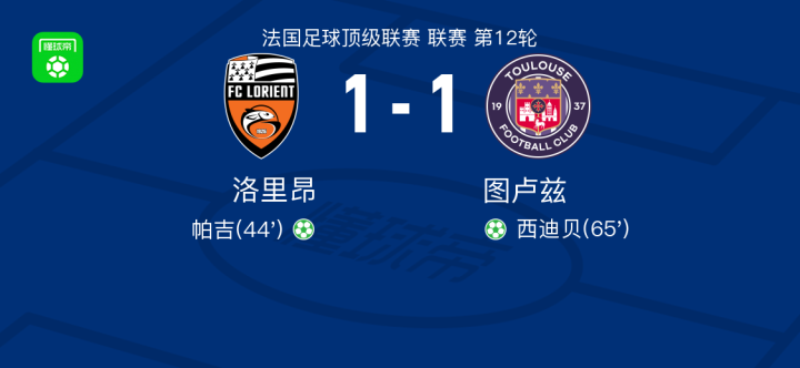 洛里昂1-1图卢兹,帕吉破僵,西迪贝救主战报bot2025-11-09 23:52北京时间11月9日,法国足球甲级联赛第12轮,洛里昂坐镇主场迎战图卢兹。比赛中,洛里昂球员帕吉主罚点球命中,为球队取得领先。随后,图卢兹球员西迪贝同样通过点球破门,帮助球队扳平比分。最终双方以1比1握手言和。点击查看本场比赛详细数据>>点击查看法甲完整积分榜>>精彩瞬间第44分钟,洛里昂球员帕吉罚入点球。第65分钟,图卢兹球员西迪贝罚入点球。 球队阵容 技术统计 展开更多