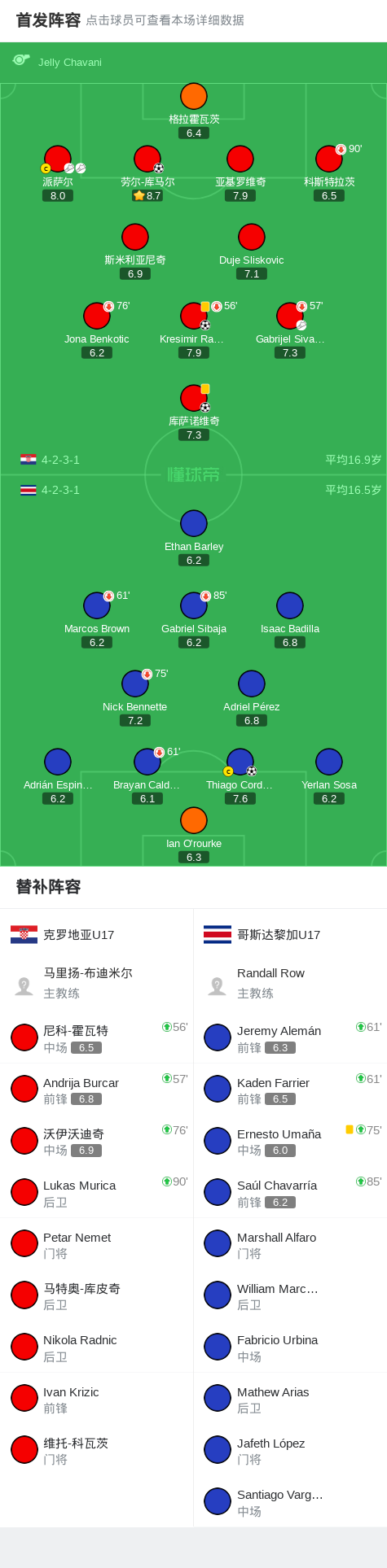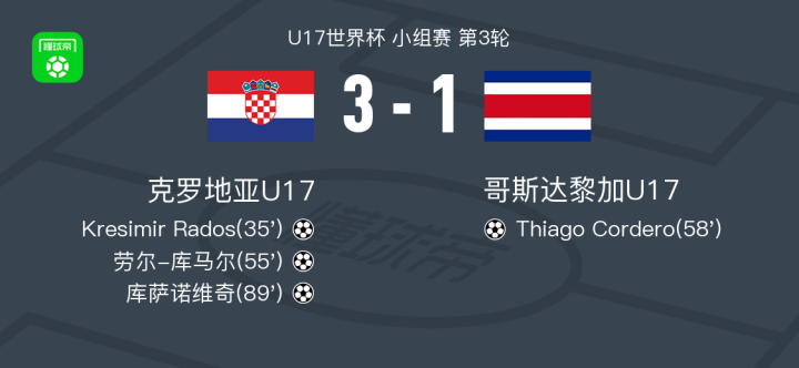 克罗地亚U17 3-1哥斯达黎加U17,库萨诺维奇建功,劳尔-库马尔破门