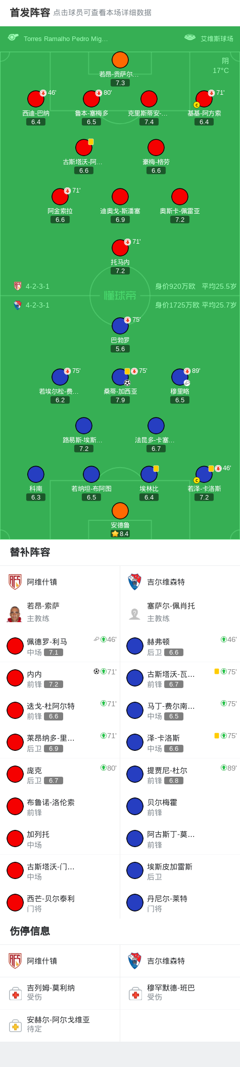 阿维什镇1-1吉尔维森特,桑蒂-加西亚破门,内内扳平