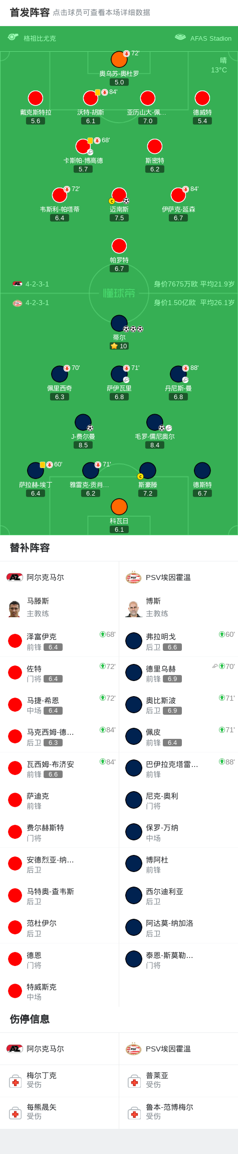 PSV埃因霍温5-1大胜阿尔克马尔,蒂尔帽子戏法,J-费尔曼破门