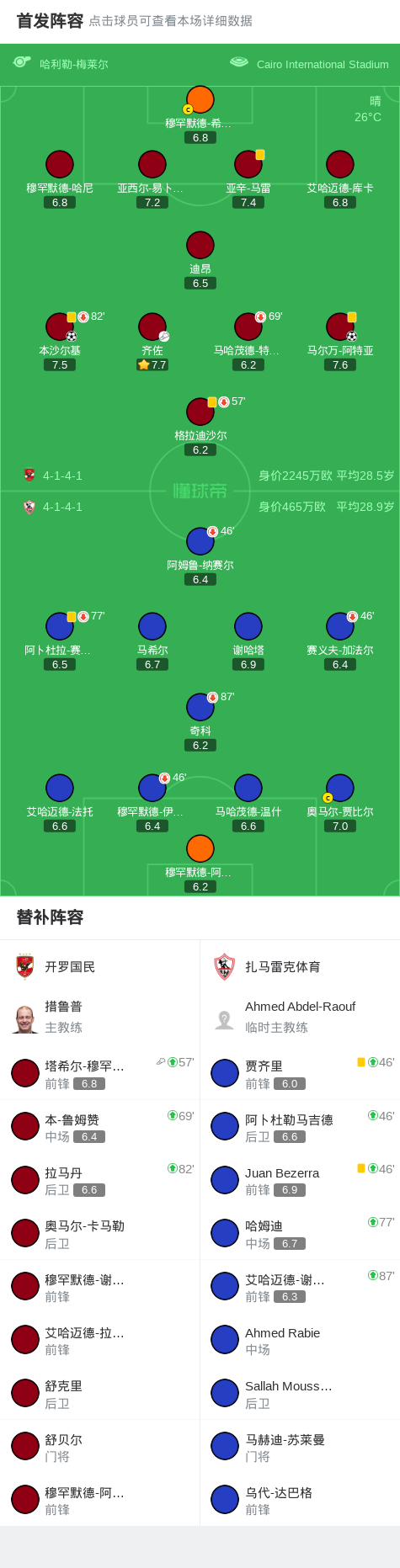 开罗国民2-0扎马雷克体育,本沙尔基破门,马尔万-阿特亚锁定胜局
