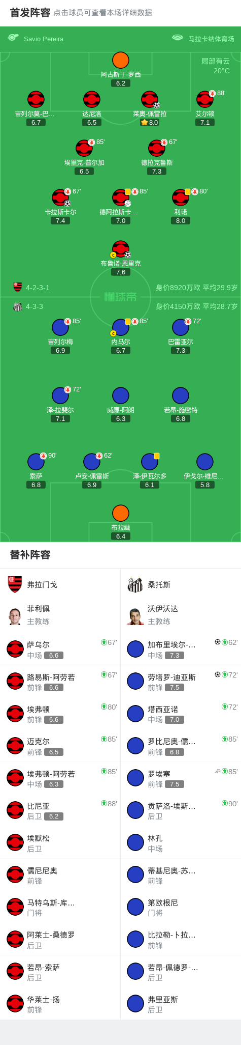 北京时间11月10日巴西足球甲级联赛 联赛 第33轮,弗拉门戈主场对阵桑托斯。弗拉门戈莱奥-佩雷拉破门,卡拉斯卡尔破门,布鲁诺-恩里克破门。桑托斯加布里埃尔-邦滕波破门,劳塔罗-迪亚斯破门。最终比分弗拉门戈 3-2 桑托斯。