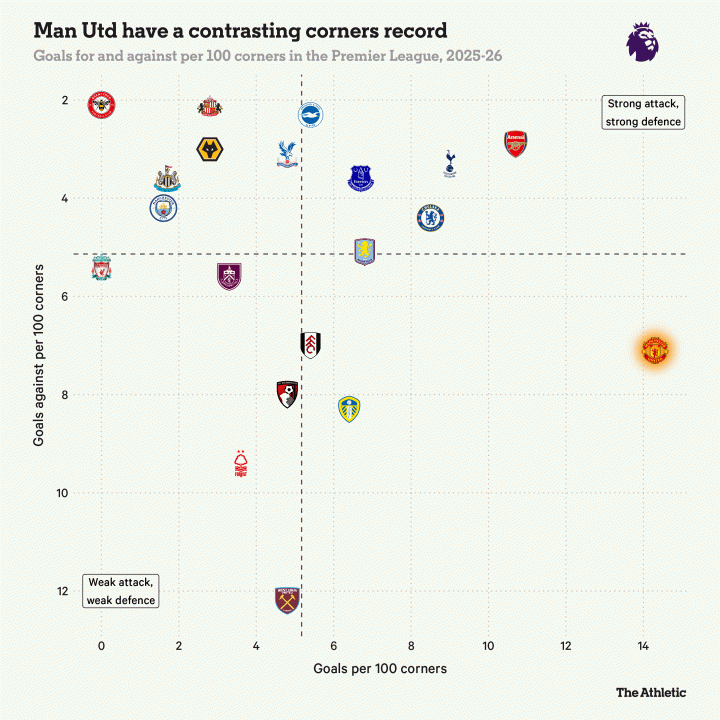 另一方面,阿莫林的球队本赛季已将进攻角球转化为一项优势——考虑到过去七年的情况,这曾是难以想象的场景。