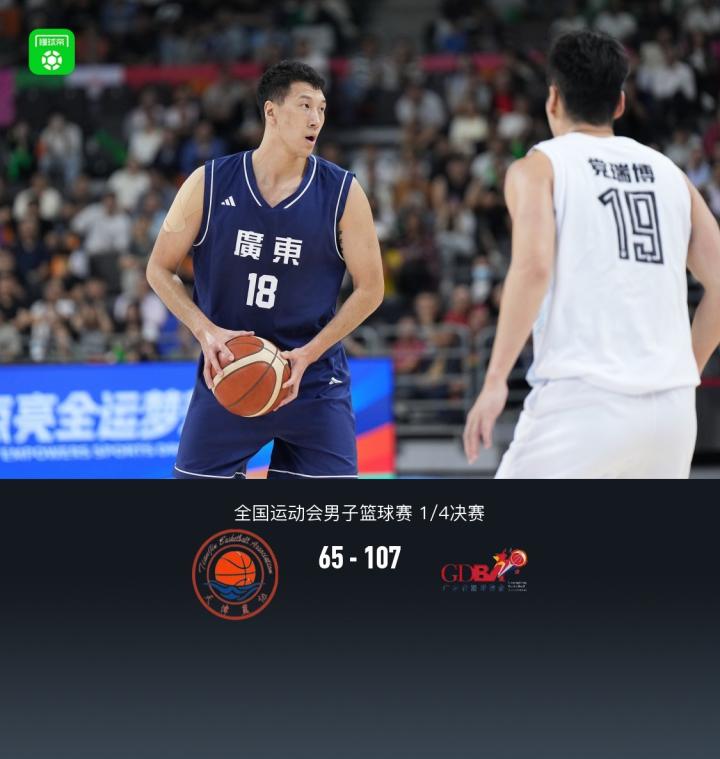 北京时间11月10日全国运动会男子篮球赛 1/4决赛,天津男篮对阵广东男篮。前两节多数时间天津能够与广东保持拉锯,但来到节末段广东均能打出小高潮拉开分差,半场天津男篮36-51广东男篮,第三节广东杜润旺单节17分帮助球队将分差拉大至30分,末节广东正常轮换继续拉大分差,最终广东男篮107-65大胜天津晋级半决赛。