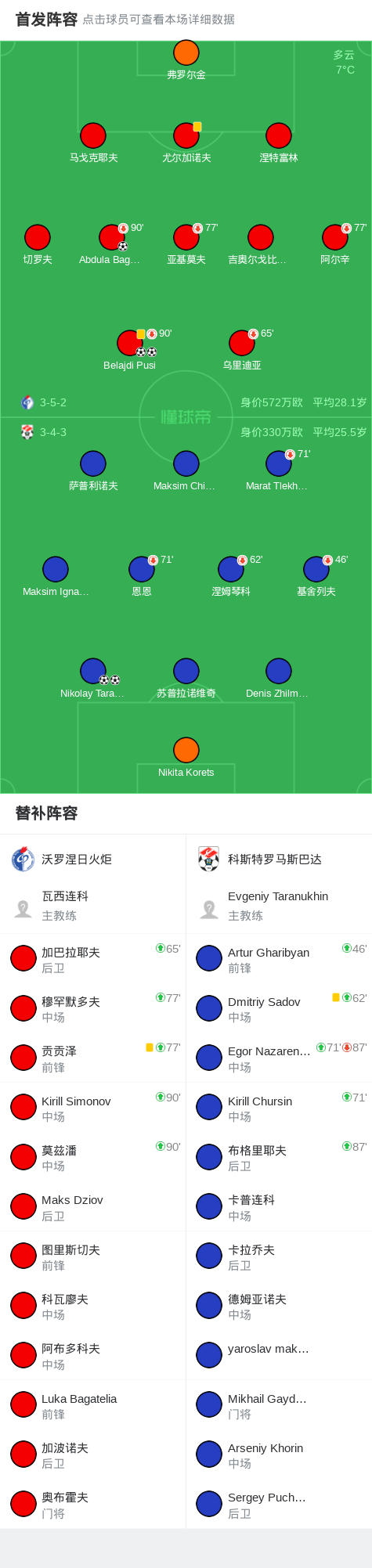 第68分钟,科斯特罗马斯巴达球员Nikolay Tarasov打入一球。