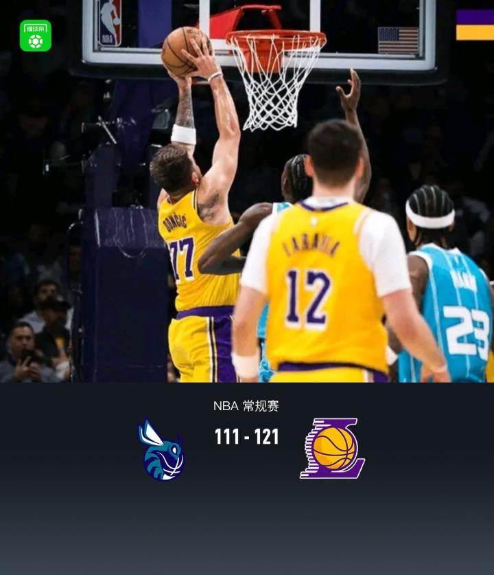 湖人121-111击败黄蜂,东契奇38+6+7,布里奇斯34+8