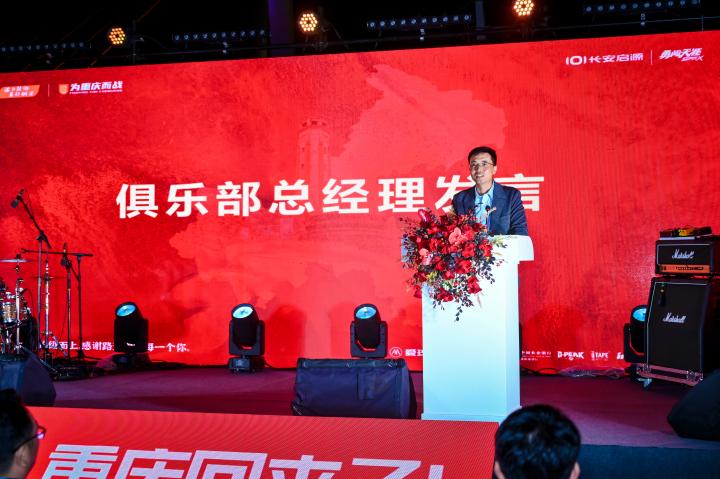 华润雪花啤酒重庆营销中心总经理刘彬在发言中,分享了与球队携手“勇闯天涯”的激情,他表示,雪花啤酒将与所有球迷一起,为重庆铜梁龙的每一场战斗呐喊助威,共同见证球队在中超赛场的每一次拼搏与辉煌。
