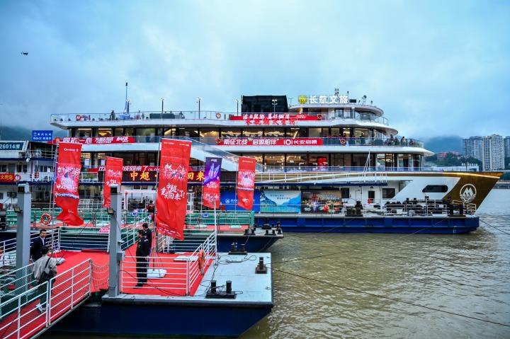庆典在全场合影中落下帷幕,洪崖洞、来福士等地标作为背景,与全体参会者共同定格这极具历史意义的“全家福”。随后,嘉宾在游轮各层用餐区交流互动,晚宴在温馨而热烈的氛围中延续。