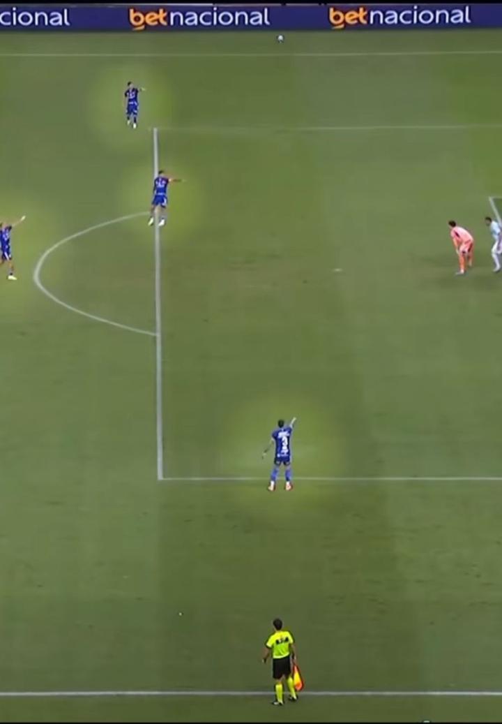 在回放中的细节图里,可以清楚看到福塔雷萨队的四名球员同时指向了本队门将身后“潜伏已久”的格雷米奥前锋卡洛斯-维尼修斯——但也许是急着发出门球,布伦诺未意识到这点。而就在下一秒,格雷米奥前锋维尼修斯抢断得手,打进一球。