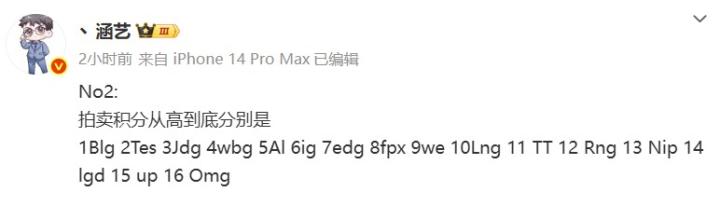 涵艺:LPL拍卖积分BLG最高,JDG第三,iG第六
