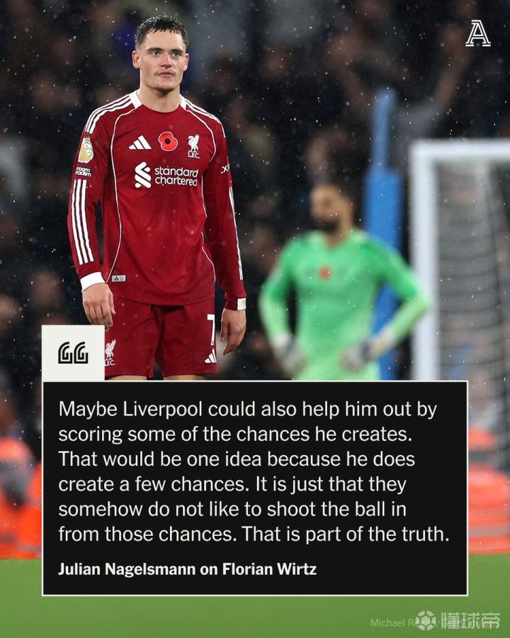 德国队主教练纳格尔斯曼重申了他对维尔茨的利物浦队友的批评,称这位组织核心球员因为队友糟糕的临门一脚而备感失望。