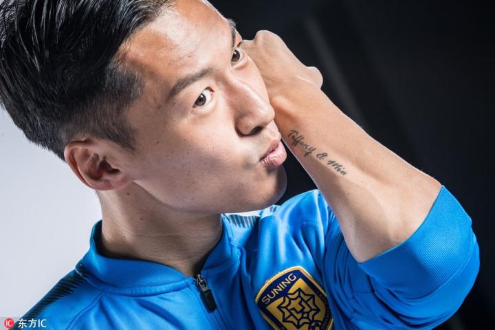 图集:苏宁将帅拍摄新赛季写真,吴曦亲吻手臂纹身