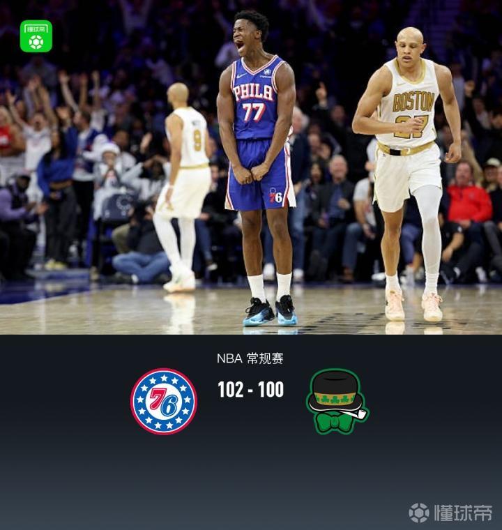 76人102-100险胜凯尔特人,马克西21+5+9,布朗24分
