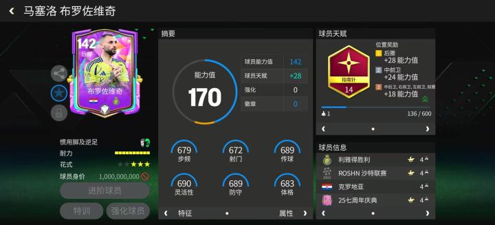 沙特联赛中,目前排名榜首的利雅得胜利阵中,11号球衣属于后腰布罗佐维奇,现年32岁的他是球队的核心后腰。游戏中,布罗佐维奇在七年庆活动中推出了一张142能力值球员卡,配备指南针天赋,高级油炸丸子花式,是一张能攻善守的后腰。