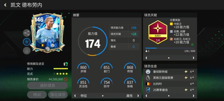 作为意甲联赛的卫冕冠军,那不勒斯的11号球衣属于球队中场德布劳内,尽管已经34岁,但他那顶级的传控依旧能大大帮助球队。游戏中,德布劳内在25赛季最佳活动中推出了一张146能力值球员卡,配备高级油炸丸子花式的他是一名可靠的中场持球手。