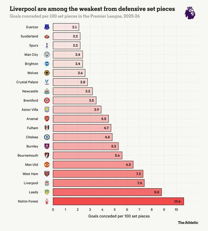 但解决方案似乎尚未找到。利物浦目前的阵容和夏季招募并不适合定位球防守,而英超联赛如今对此非常倚重。