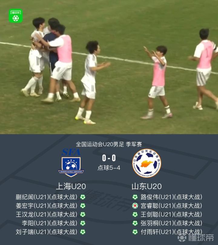 全运会U20男足:上海点球5-4战胜山东夺得铜牌,宫睿聪失点