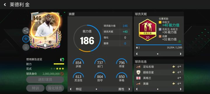 金配备了叹息之墙天赋,作为一名中后卫,他的基础花式给到了高级油炸丸子,后场摆脱能力相当出色。实战中,金的身材虽不算高但却强壮无比,这让他在近身防守中的干扰效果大大提升。他在场上站位稳定,对手靠近禁区时的上抢封堵迅速。由守转攻时,金也能利用花式从用应对对手反抢,降低后场失误风险。