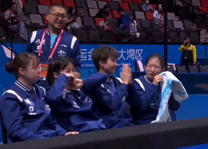 比赛结束后,两队的女孩都哭作一团,眼泪的情感却各有不同。