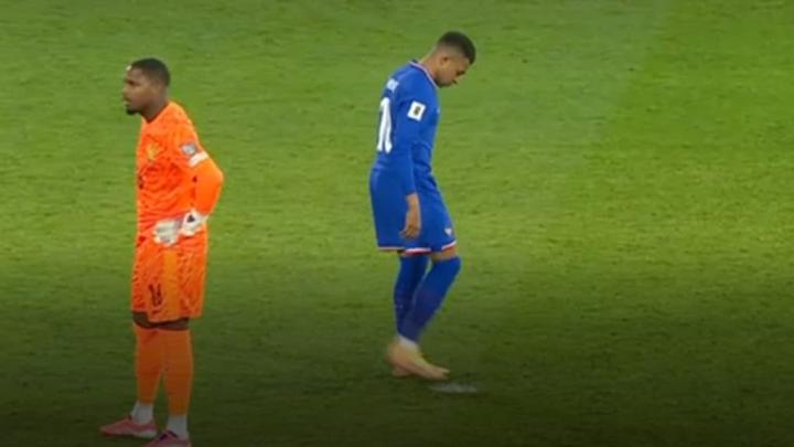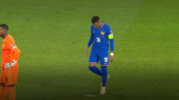 在比赛第50分钟,比分仍是0-0,于帕梅卡诺一次潜在犯规被视频裁判检查。裁判前往场边观看回放时,姆巴佩悄悄走向点球点并试图破坏地面。他在TF1采访中主动谈到这一幕。