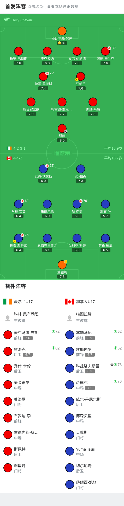 90分钟战报:爱尔兰U171-1战平加拿大U17,双方进入点球大战