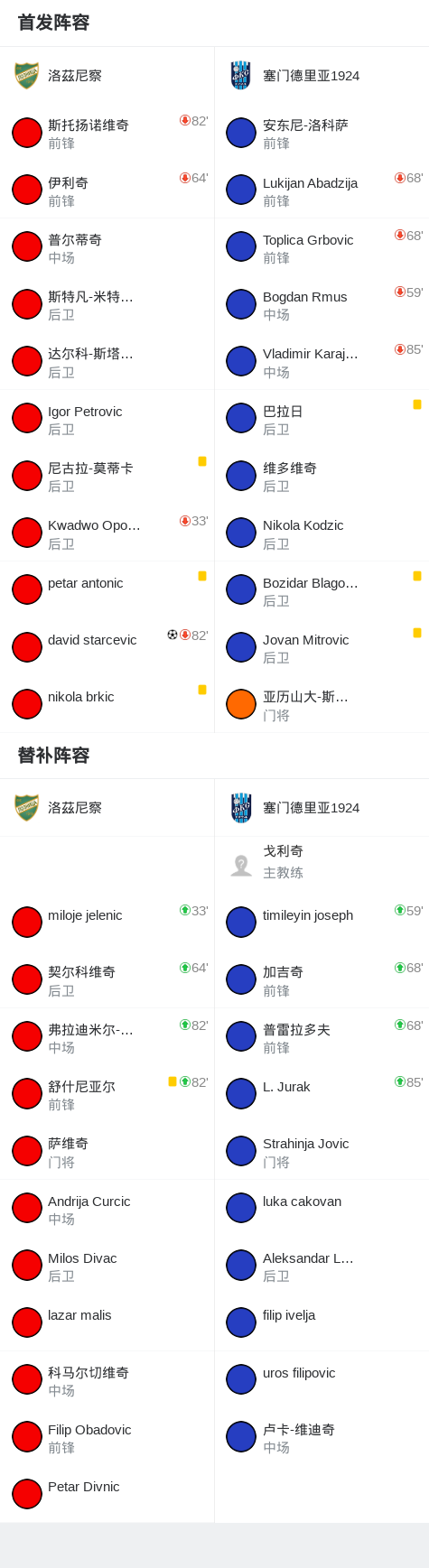 洛茲尼察1-0塞门德里亚1924,david starcevic助球队取胜战报bot @懂球帝2025-11-15 01:53北京时间11月15日,塞尔维亚足球甲级联赛第18轮展开较量,洛茲尼察坐镇主场迎战塞门德里亚1924。比赛中,david starcevic成功破门,为球队攻入制胜进球。凭借此球,洛茲尼察以1-0战胜对手,全取三分。点击查看本场比赛详细数据>>精彩瞬间第30分钟,洛茲尼察球员david starcevic打入一球。 球队阵容 技术统计 展开更多