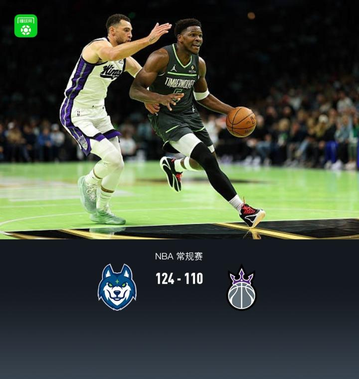森林狼124-110战胜国王取4连胜,爱德华兹30分,威少空砍三双