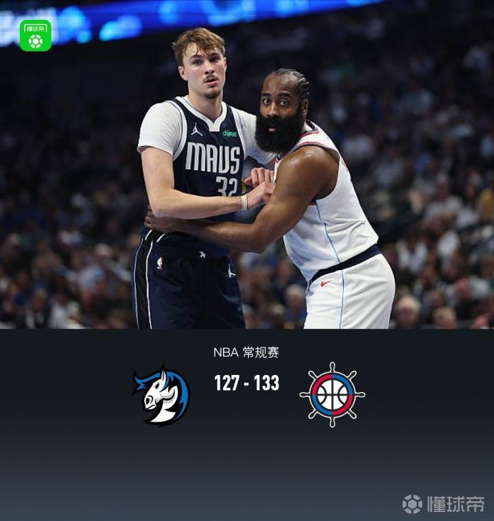 加时赛独行侠弗拉格拿下6分,快船哈登拿下10分,最终独行侠127-133不敌快船