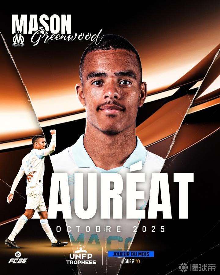 4场5球,官方:马赛前锋格林伍德当选法甲10月最佳球员