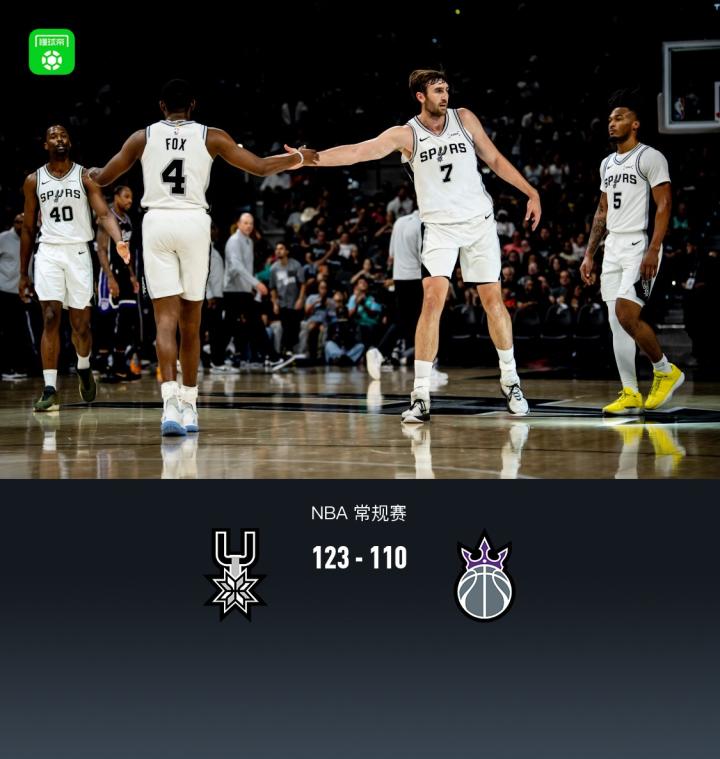 马刺123-110轻取国王,福克斯28+11,文班亚马缺阵