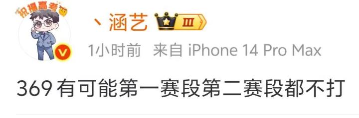 据涵艺爆料:“AL是五只全员续约🐼。”同时他也表示:“369有可能第一赛段第二赛段都不打。”