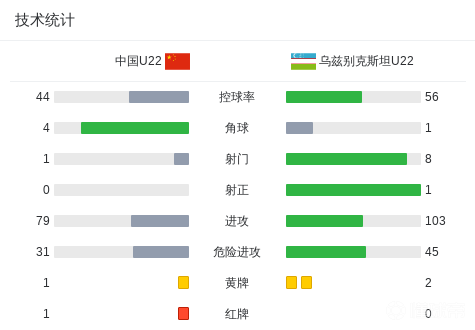 U22中国0-0乌兹别克斯坦U22无缘冠军,汪士钦报复推人染红