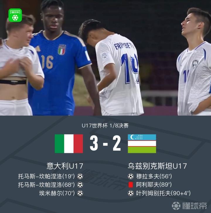 意大利U17 3-2乌兹别克斯坦U17晋级8强,坎帕涅洛梅开二度