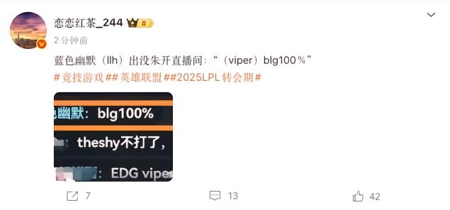 JDG老板蓝莲花确认:BLG.Viper,100%David_Ro @懂球帝2025-11-18 22:48北京时间11月18日,JDG老板蓝莲花出现在朱开直播间里爆出猛料,S11冠军ADViper即将加盟BLG,100%确认。2021年,Viper随EDG问鼎世界赛。2023年起,他就回国回到了HLE俱乐部,在HLE征战三个赛季,如今他大概率将重返LPL,加盟BLG。展开更多