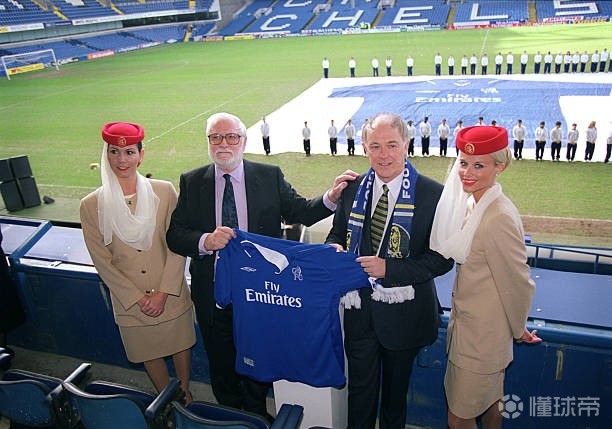 2001年1月切尔西老板肯-贝茨召开新闻发布会高兴地宣布球队与阿联酋航空达成全新的赞助协议,双方将签署为期四年总赞助金额达到2400万英镑的合同。这份合同的签订使切尔西成功超越阿森纳与世嘉以及利兹联与Strongbow之间的合作,成为仅次于曼联与沃达丰的联赛第二高赞助收入,而作为合约的一部分切尔西也将会定期派遣教练员前往迪拜指导当地的青训工作,并在休赛期乘坐阿航飞机前往迪拜参加友谊比赛。