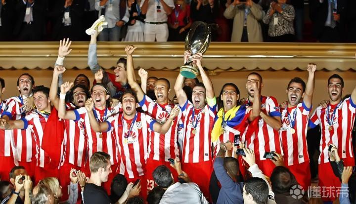 (图)身披印有华为Logo球衣的马竞球员庆祝夺冠