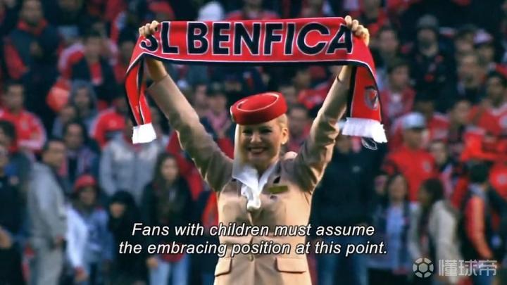 2015年10月25日在著名的光明球场,一场本菲卡坐镇主场的葡超联赛即将开赛,突然间从球员通道走出8名身着阿联酋航空制服的空姐,他们缓缓走到球场中央并围绕中圈而立,现场65000多名观众对这突发的场面满脸疑惑,就在此时球场内响起了平日只能在乘坐飞机时才能听到的乘机安全事项广播,伴随着广播的开启,球场内的空姐们开始了以往只在飞机上才会出现的安全演示。但这次的表演又不同以往,因为他将飞机变成了球场,将乘客当成了现场球迷,将飞行时长转换成了90分种的比赛时间,将机上的安全出口变成了32个球场入口,最后她们还演示了该如何运用球迷围巾帮助球队助威。现场球迷们为这一场不同寻常和颇为创新的开场秀感到惊喜,球迷的热情被调动起来。而在之后这段足球现场版的“飞机安全演示”视频在国外各大社交网站上快速传播,可以说这是一次阿航与球迷间非常成功的互动营销。