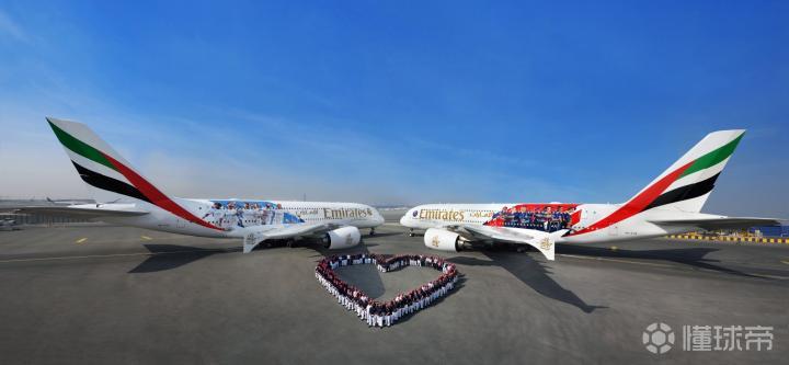 作为一家航空公司当然也要在自家的飞机上进行宣传,为此阿联酋航空分别定制了以阿森纳、皇马、巴黎圣日耳曼、AC米兰为主题的飞机涂装,这些飞机不但日常会执行正常的民航飞行任务,同时在俱乐部夏季进行的全球巡回友谊赛中他们也将摇身一变成为球队专机,带着俱乐部的球星们前往世界各国进行比赛。
