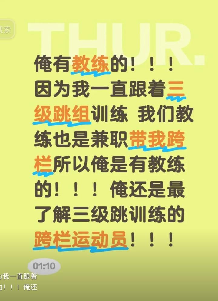 刘景扬:我一直跟着三级跳组训练,教练也是兼职带我跨栏