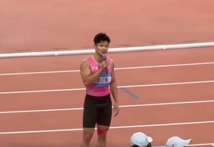 今晚,谢震业没有参加4X100的决赛,但他现场见证了苏炳添的谢幕之战。