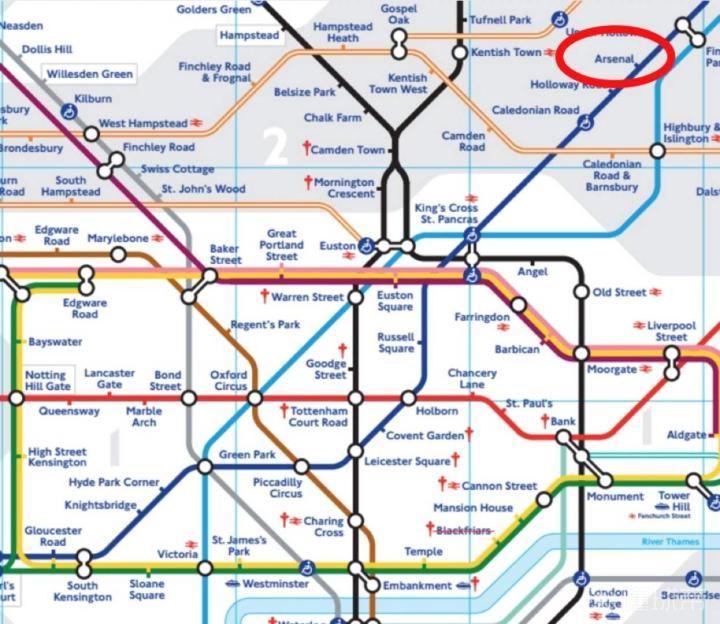 作为以球队名字命名的地铁站,酋长球场所在的阿森纳站位于伦敦2区。如同北京的五环,伦敦也根据地理位置分为6个区域。其中大多数景点位于1,2区。对于比赛日前往酋长球场看球的球迷,还是较为便利的。