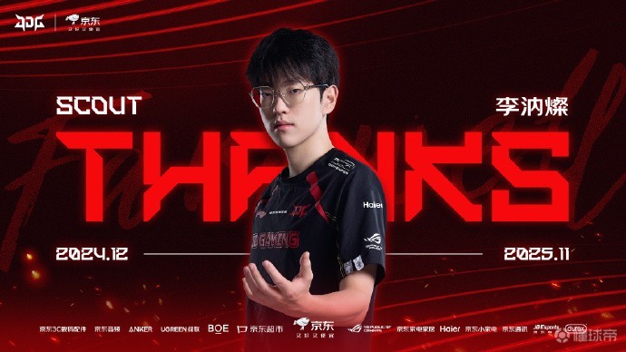 感谢Scout选手在队期间为JDG京东电子竞技俱乐部的付出,同时也感谢粉丝们的支持与关注。海内存知己,天涯若比邻。祝愿Scout选手在未来的职业生涯中一切顺利,我们赛场见!